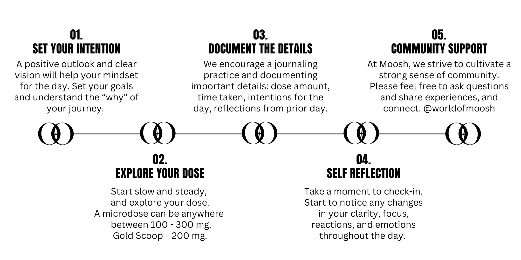 Set your intentions, track your personalized dosage, and practice self-reflections on your Moosh guide.