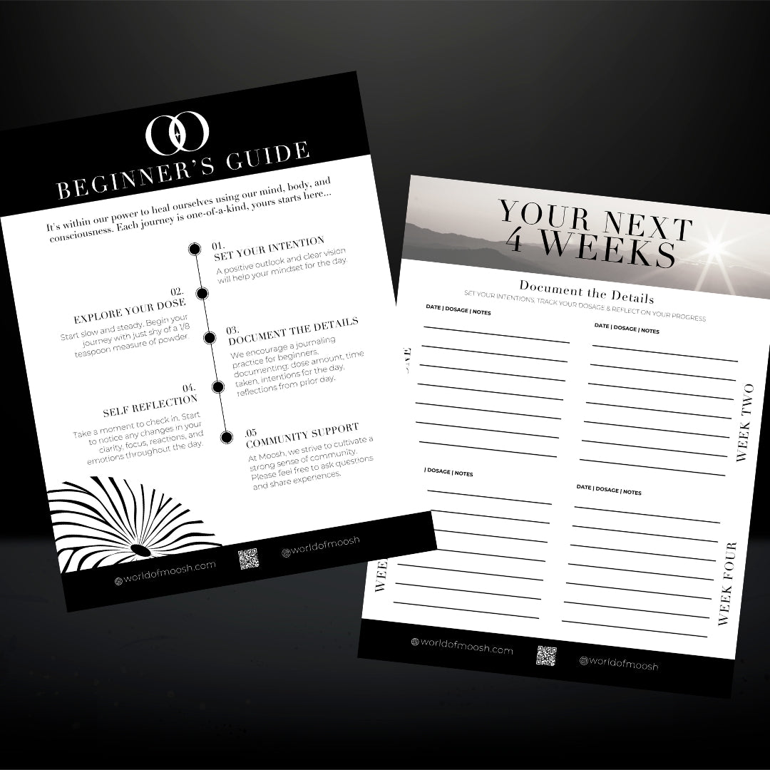 Set your intentions, track your personalized dosage, and practice self-reflections on your Moosh guide.